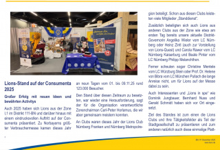 Auch 2025 haben sich Lions aus der Zone I,1 im Distrikt 111-BN und darüber hinaus mit einem eindrucksvollen Auftritt auf der Consumenta präsentiert. Zu Norbayerns größter Verbrauchermesse kamen dieses Jahr